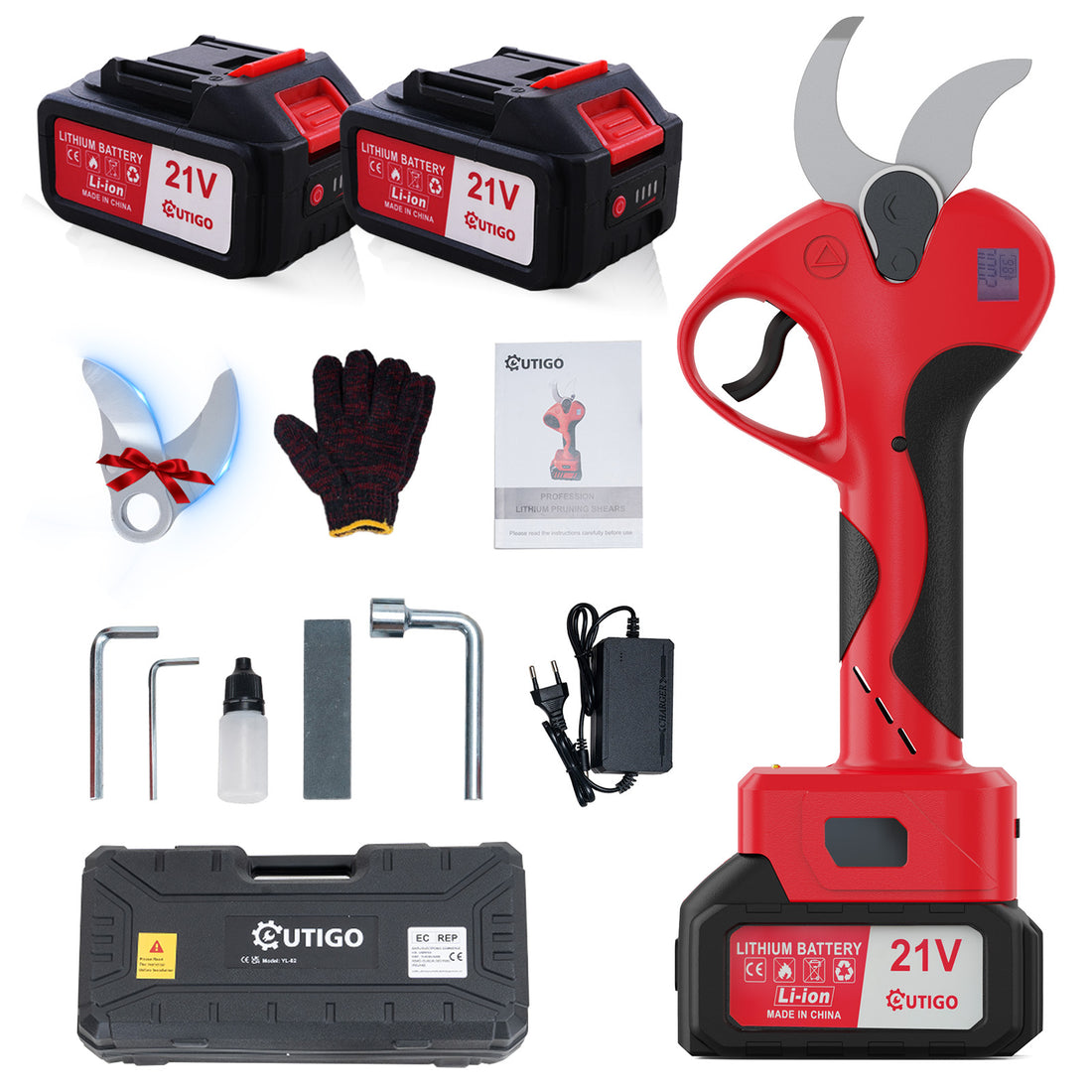 Professional Electric Garden Shears, 40 mm Battery Grtenscher, 2 x 3000 mAh Lithium Rechargeable Battery, Pruning Shears, Vine Shears, Tree Shears, Rose Scissors