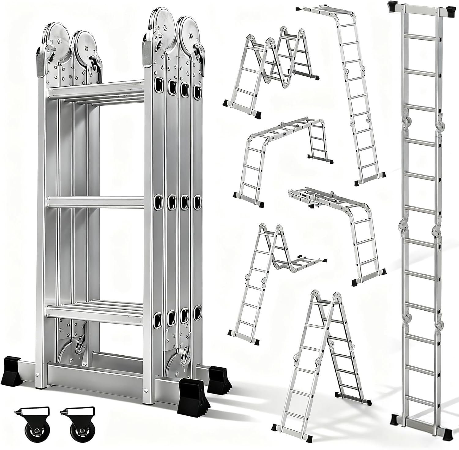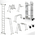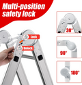 【Versatile】: Multifunctional ladder: folding ladder + scaffolding ladder + support ladder + multipurpose ladder. Lockable hinge adjusters allow you to quickly convert the ladder into different configurations, such as an inclined ladder, trestle ladder, telescopic ladder, stepladder, or trestle ladder, to meet your various needs. Multiple safety locks ensure your personal safety.