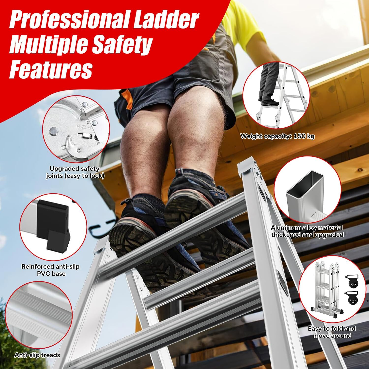 【Sturdy and durable】: Made of high-quality aluminum, it supports up to 150 kg and offers great stability: it is corrosion-resistant, weatherproof, and easy to transport.